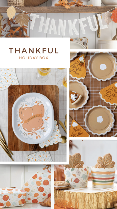 Elevate your Thanksgiving celebration with our festive Holiday Box! Designed to serve 8 people, this beautifully curated collection includes charming paper goods and a stunning banner that will add a touch of warmth to your dinner table. Each box features elegant plates, napkins, cupcake liners, and to-go boxes, all adorned with seasonal designs, ensuring your gathering is both stylish and convenient. The included banner sets the perfect backdrop for your feast, creating a cozy ambiance that will delight your guests. Make your Thanksgiving memorable with this all-in-one solution for a stress-free and joyful holiday gathering!